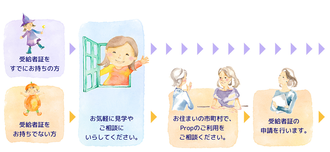 Propの児童発達支援・放課後等デイサービスのご利用には、「通所受給者証」が必要となります。